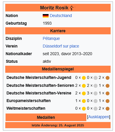 Ein Schlüsselspieler auf dem Weg zum Titel war Moritz Rosik. Der 31-Jährige aus Düsseldorf, seit 2007 im Boule aktiv, ist ein erfahrener Nationalspieler und mehrfacher deutscher Meister. Seine größten internationalen Erfolge bis dato: Bronze bei der EM 2015 (U23), WM 2017 und WM 2023 in Cotonou. Rosik zeigte in Santa Susanna nicht nur spielerische Klasse als Pointeur, sondern auch Größe außerhalb des Rampenlichts.