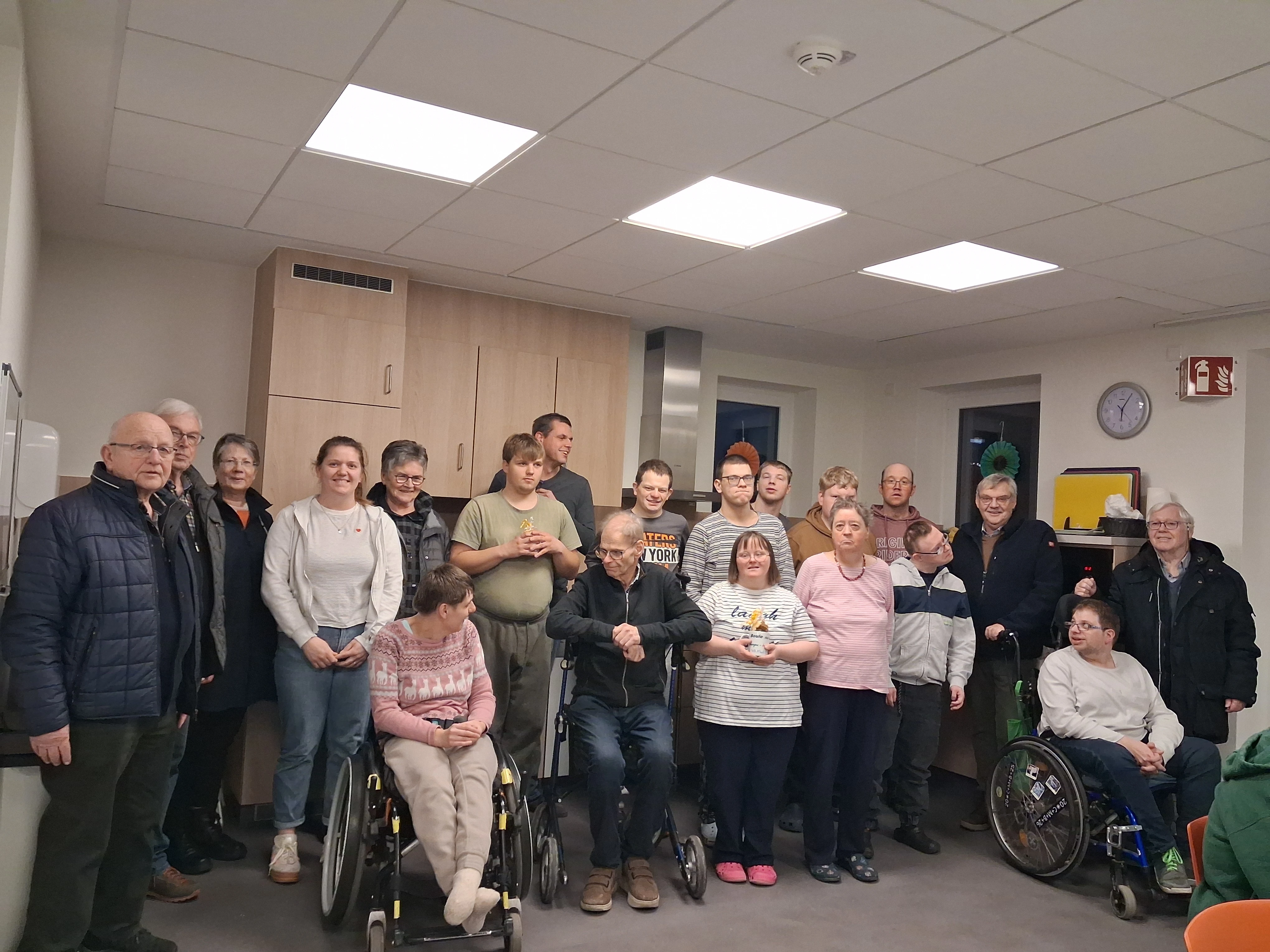 Zur Überraschung der Hausbewohner hatten die Bouler für alle Mitglieder der Gruppe Mittendrin eine Vereinstasse mit dem Logo der Bouleabteilung und etwas Gebäck dabei. Jessica Baxheinrichs vom Haus Hanna führte die Gruppe durchs Haus und erkärte die Abläufe. Voller Stolz zeigten die Bewohnerrinnen und Bewohner ihre Zimmer. Nach dem Gruppenfoto versprachen die Teilnehmer die guten Kontakte zu intensivieren. Der nächste Bouletermin ist bereits am nächsten Freitag. Dann treffen sich alle wieder um 16 Uhr im Erlfeld.